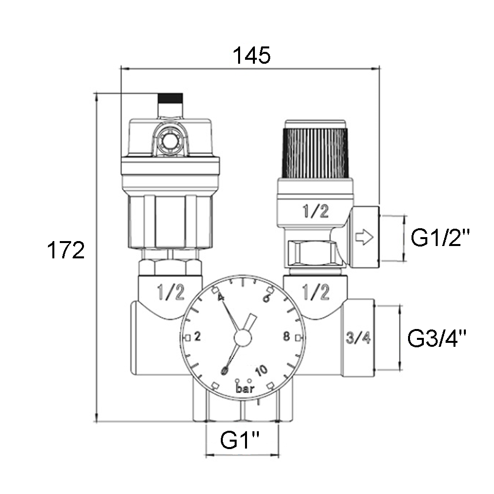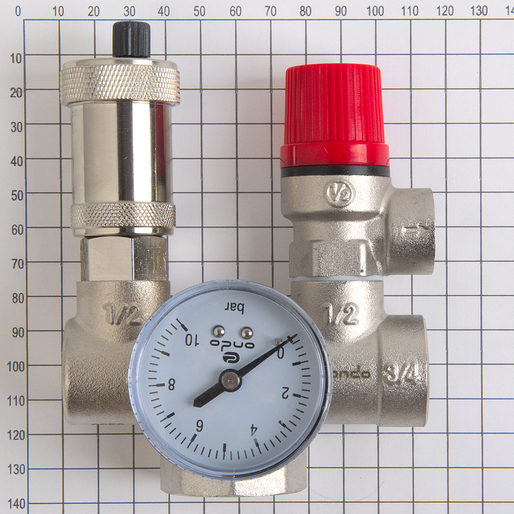 - манометр радиальный, диапазон измерения до 6 бар, необходимый для визуального контроля давления воды;