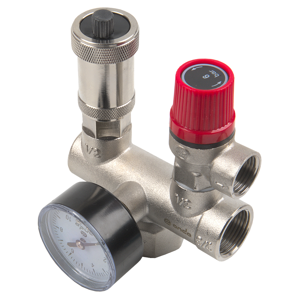 Группа безопасности котла проходная 1" ONDO OGBKP001 предназначена для использования в автономных системах водяного отопления и горячего водоснабжения (ГВС), где максимальное давление в системе ограничено настройкой установленного предохранительного клапана. Использование группы безопасности котла помогает предотвращению аварийных ситуаций и их контроля, которые могут быть связаны с закипанием теплоносителя в системе котла.