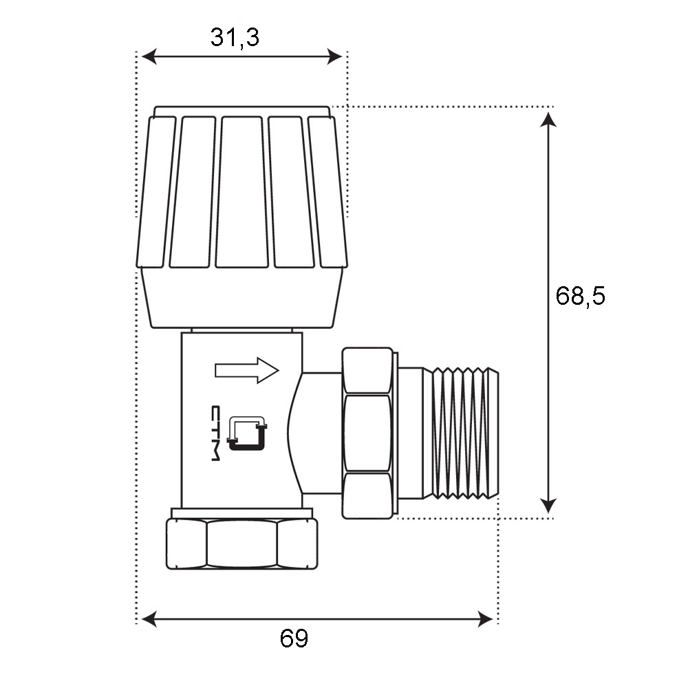 Регулирующий клапан для радиатора ручной угловой 3/4" СТМ ТЕРМО предназначен для ручного плавного регулирования расхода теплоносителя через отопительный прибор.