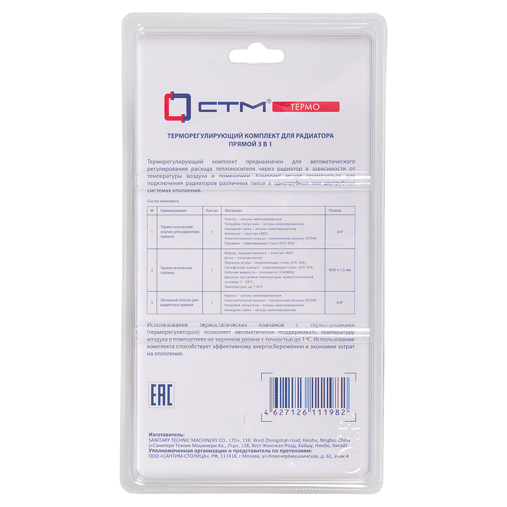 Термостатический комплект для радиатора прямой в блистере 3/4" СТМ ТЕРМО