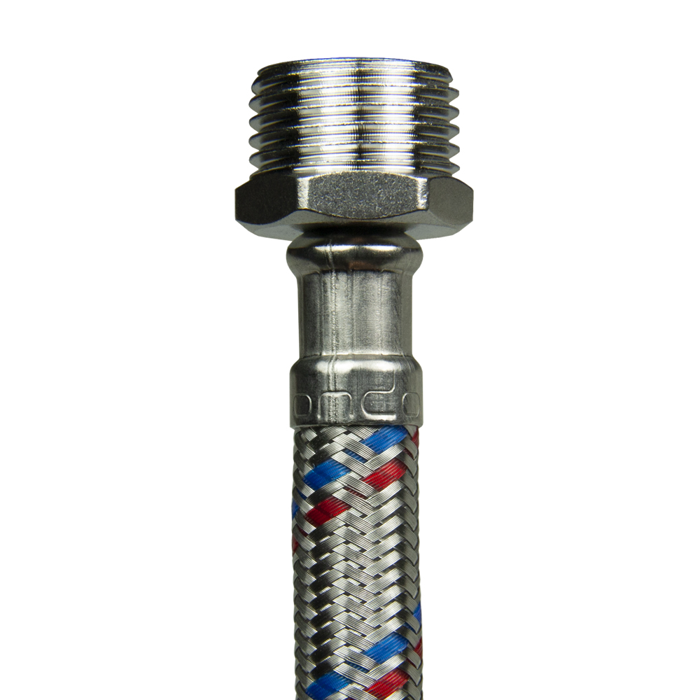• внутренний шланг из PEX обладает способностью поглощать резкие перепады давления воды. Материал устойчив к изменениям температуры, обладает повышенной сопротивляемостью к старению, что увеличивает срок эксплуатации внутреннего шланга. Внешняя оплетка изготовлена из нержавеющей стали, что делает продукцию более прочной и надежной.