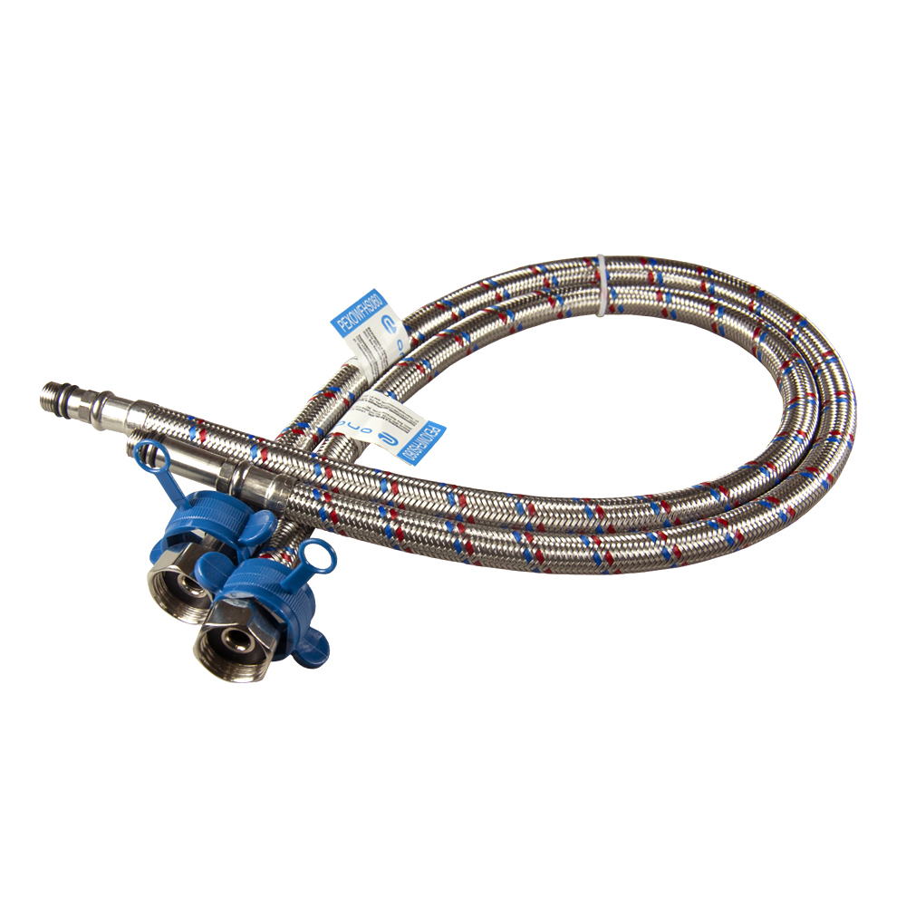 • внутренний шланг из PEX обладает способностью поглощать резкие перепады давления воды. Материал устойчив к изменениям температуры, обладает повышенной сопротивляемостью к старению, что увеличивает срок эксплуатации внутреннего шланга. Внешняя оплетка изготовлена из нержавеющей стали, что делает продукцию более прочной и надежной.