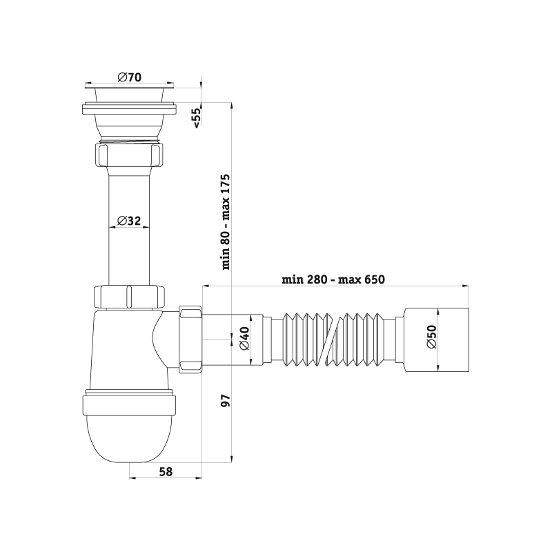 Сифон 1 1/2*40 с гибкой трубой 40*50